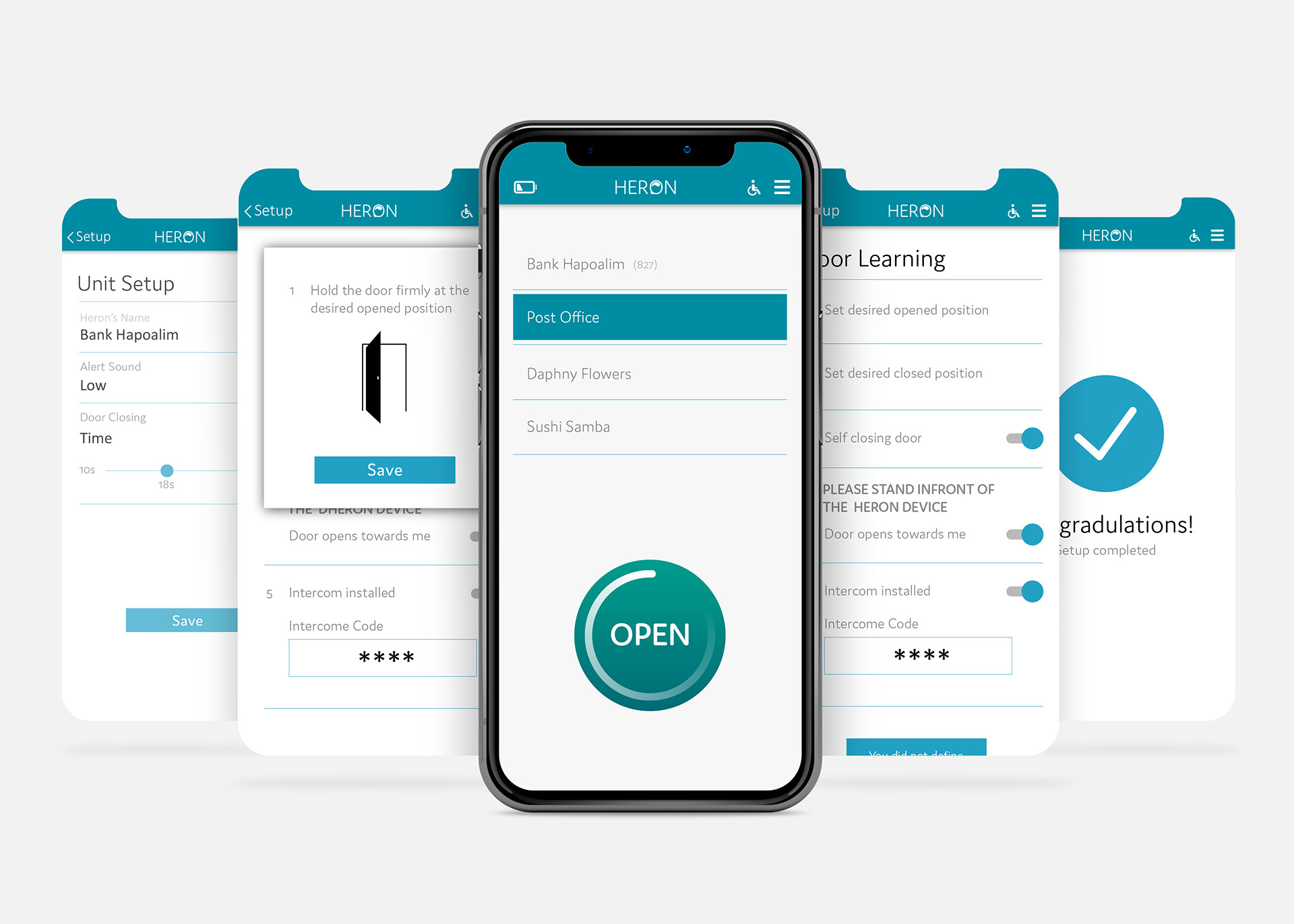 Heron app for opening doors automatically