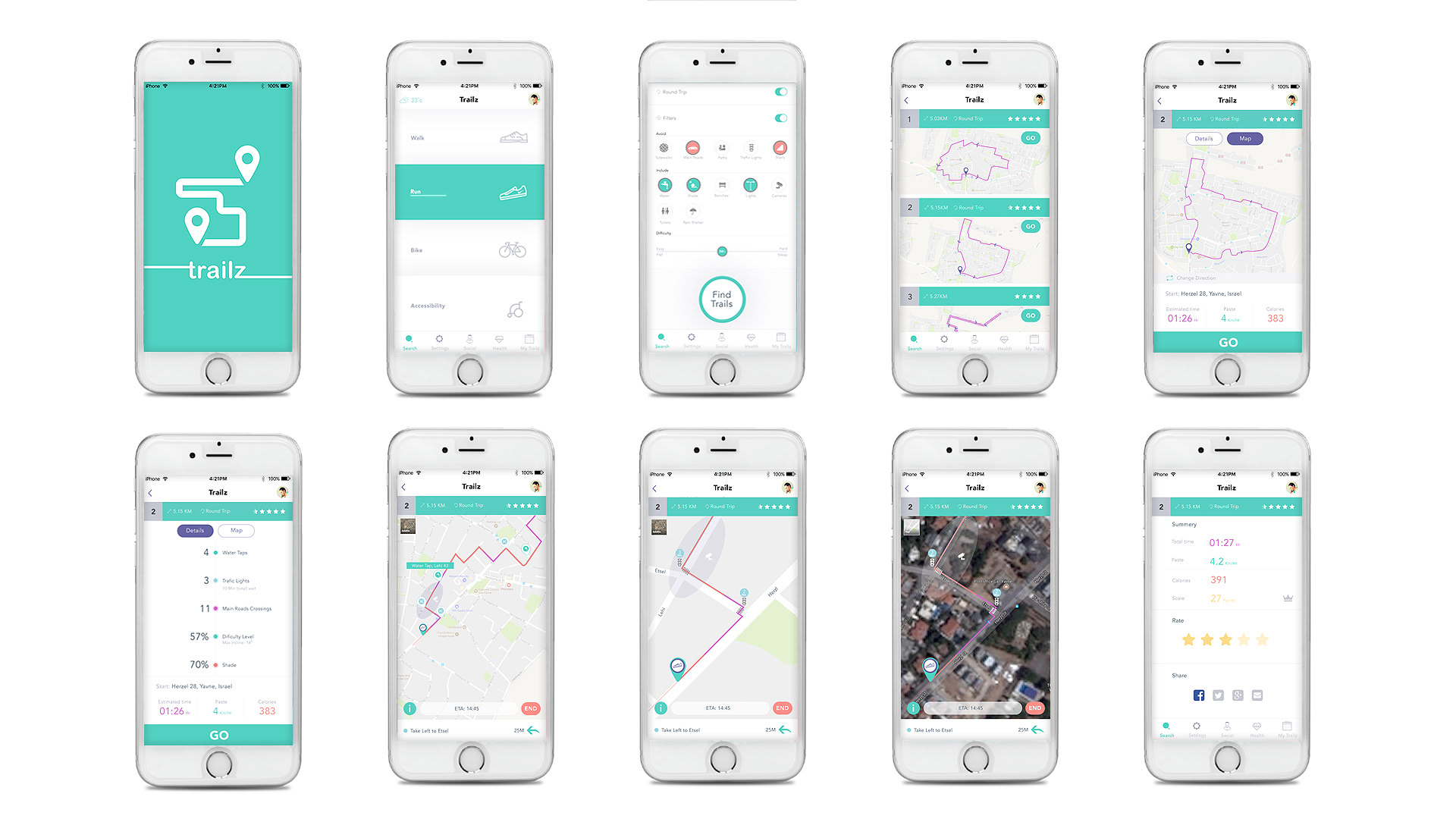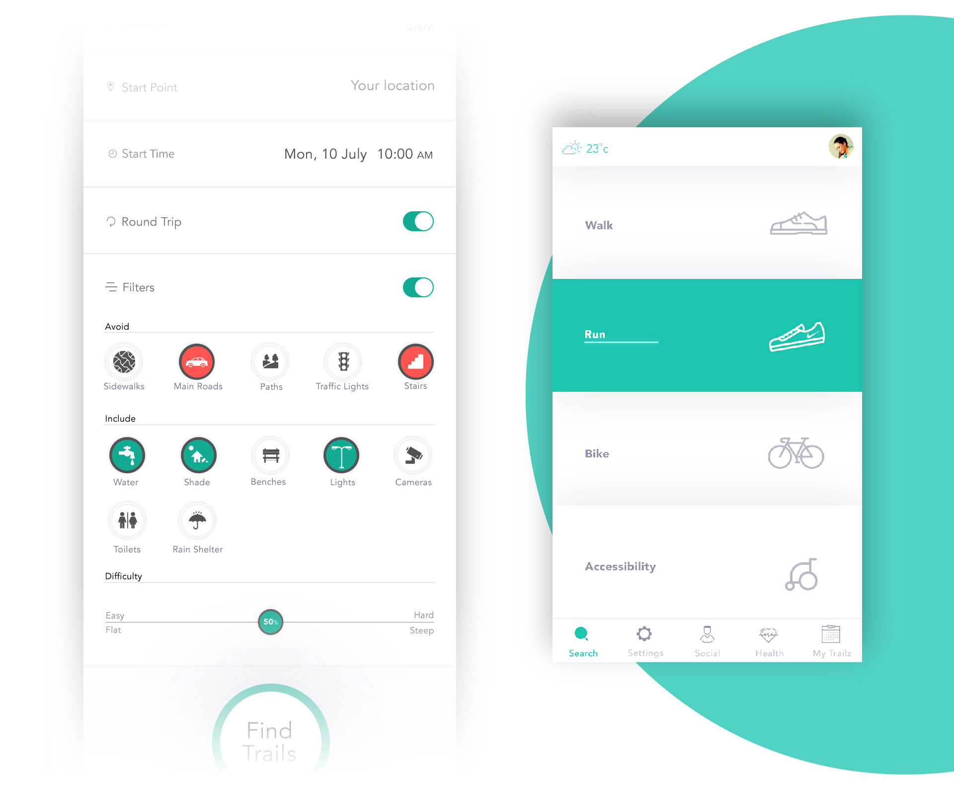 Trailz UI & UX for mobile application, 2017 application for sport and recreational activities.